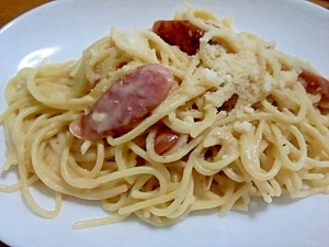 あらびきウインナーdeカルボナーラ風パスタ レシピ 作り方 By Rika Shou 楽天レシピ